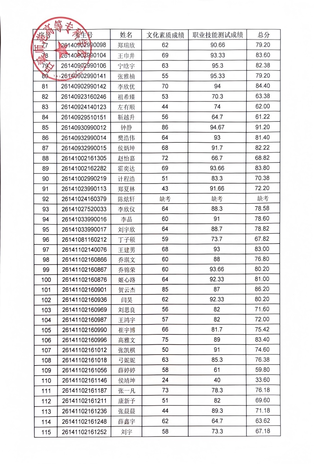 根据山西省单独招生工作统一部署及我校招生工作安排,本着公平、公正、公开、择优的原则,我校已完成2026年单独招生考试评卷、成绩汇总及审核工作。